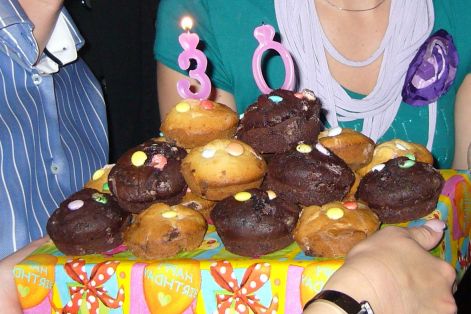 Tudom, hogy ez nem igazi torta, de ahogy már írtam, Eszti szülinapi ajándékozása majd januárban lesz, így a torta is. Persze azért most sem bírtam ki, hogy ne csináljak valami szülinaposat. Mivel egy pubban ünnepeltünk Pesten, én meg Szegedről vonattal mentem, ezért valami egyszerűre gondoltam. Ekkor jött a smartiesos muffin recept-ötlet, gyorsan elkészíthető, könnyen szállítható, a pubban is könnyen fogyasztható és a színes smartiesoktól meg olyan vidám szülinapos.
