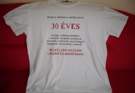 Idei ősz sűrű 30. szülinapokban, ugyanis korosztályom évvesztesei folyamatosan töltik be a 30. életévüket. Hétvégén Eszti barátnőm 30. születésnapját ünnepeltük. És természetesen neki is készítettem egy szülinapi pólót.